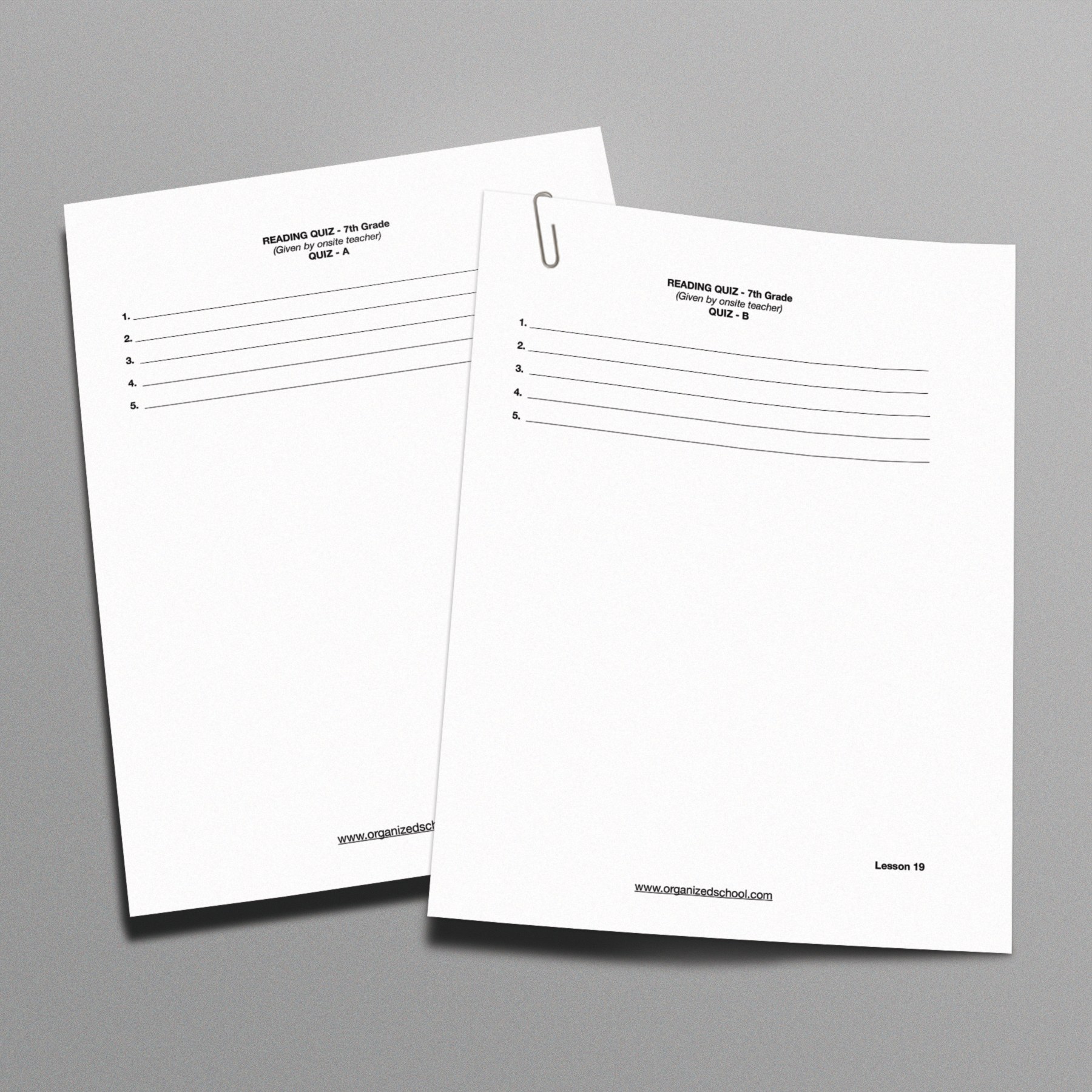 These quiz templates are convenient to print out with the lesson numbers already on them and spaces to write the answers to the quizzes. No more scraps of paper lying about with quiz answers on them!